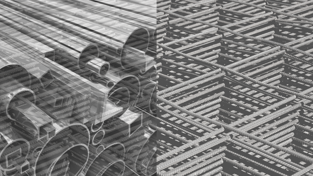 Rebar, known when massed as reinforcing steel. The steel provides all the tensile strength where concrete is in tension, as in beams and slabs; it supplements the compressive strength of concrete in columns and walls; and it provides extra shear strength over and above that of concrete in beams.